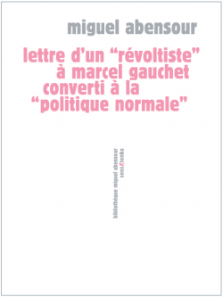Cette Lettre est la réponse tout à la fois ironique et vigoureuse de Miguel Abensour à l’agression de Marcel Gauchet à son égard dans son ouvrage La Condition historique (Gallimard). On y trouve une réflexion critique sur le drapeau brandi par Marcel Gauchet : la politique normale. À lire Miguel Abensour, il semblerait que l’art du pamphlet soit encore (heureusement) vivant.